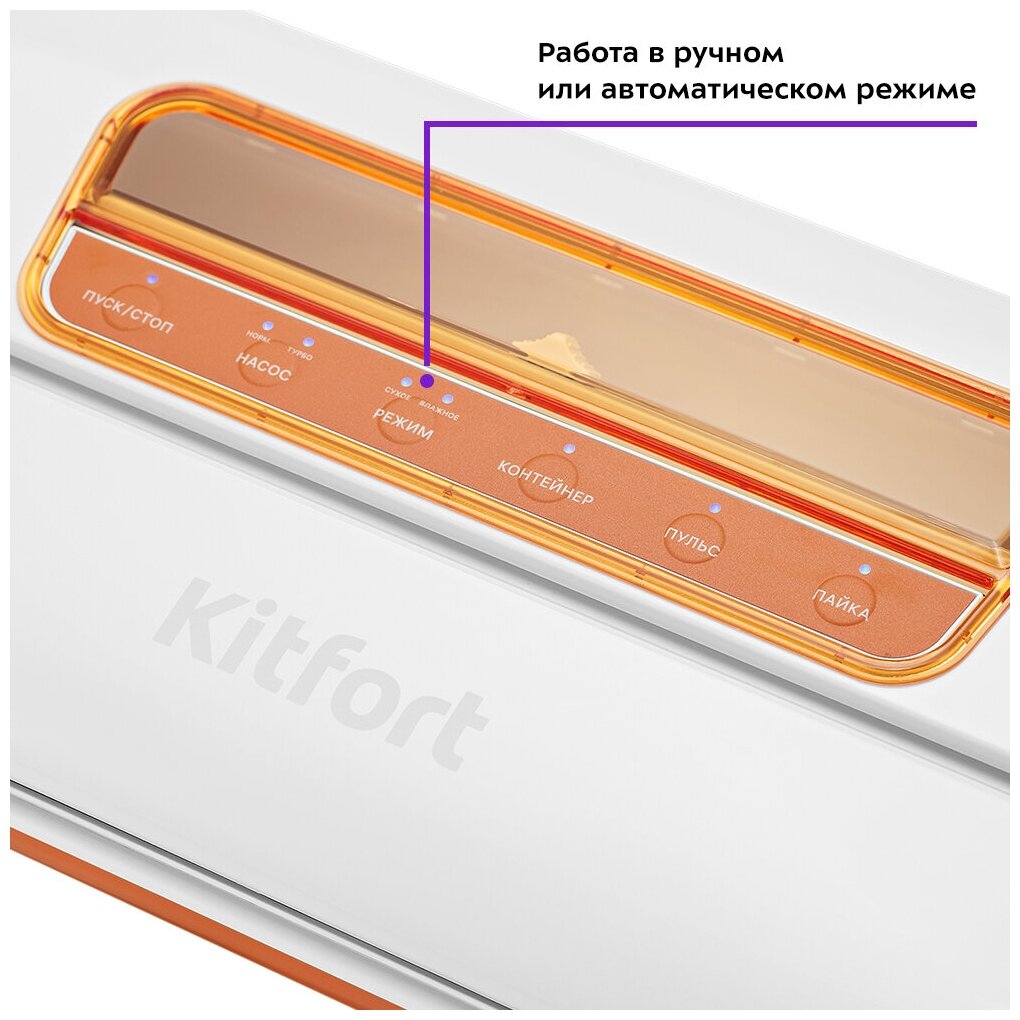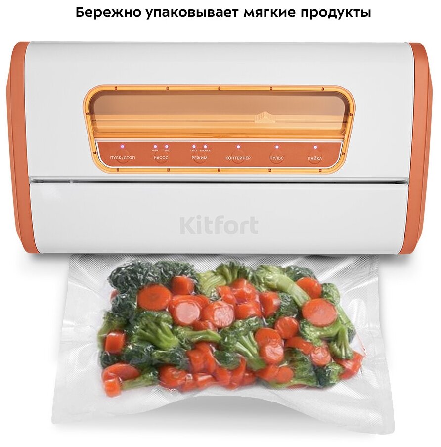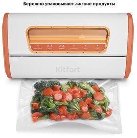 Вакууматор Kitfort КТ-1518 призван обеспечивать долгие сроки хранения ваших любимых продуктов. Продукты, упакованные под вакуумом, сохраняют свежесть и не портятся существенно дольше по сравнению с обычными условиями хранения.Мощность