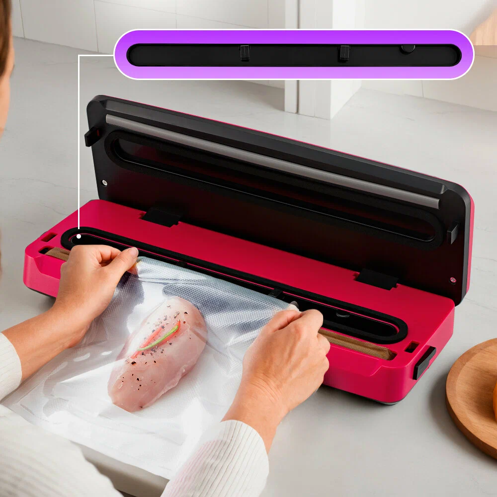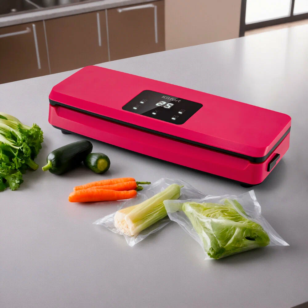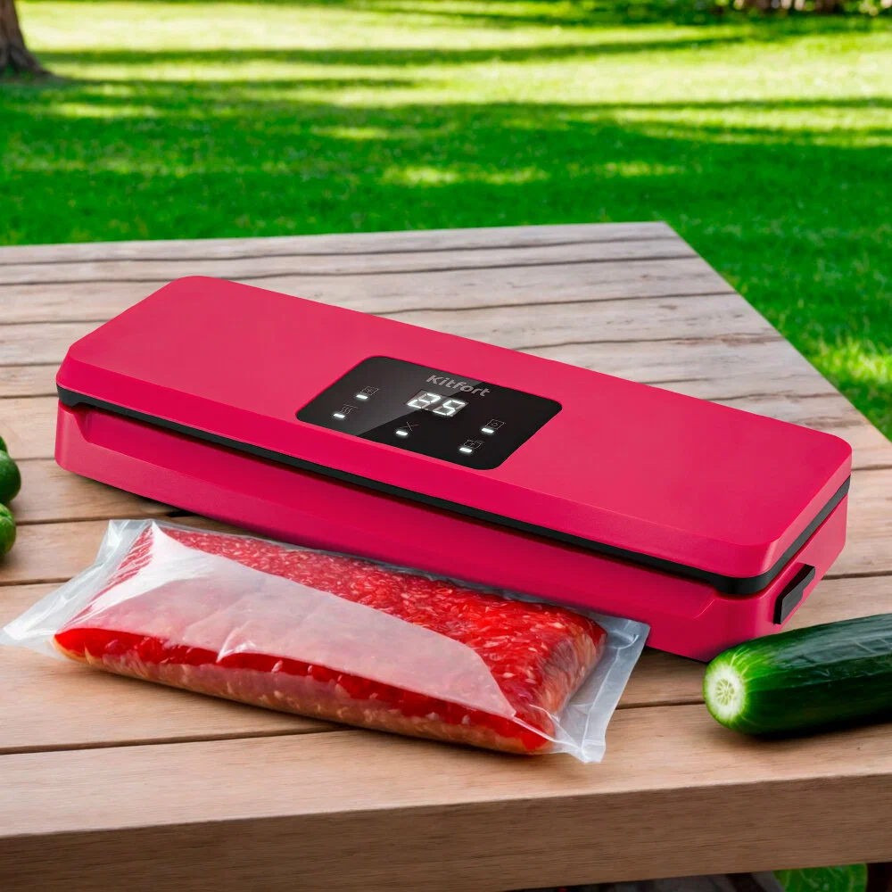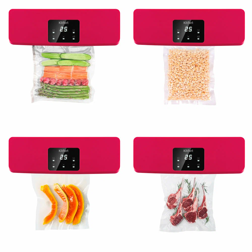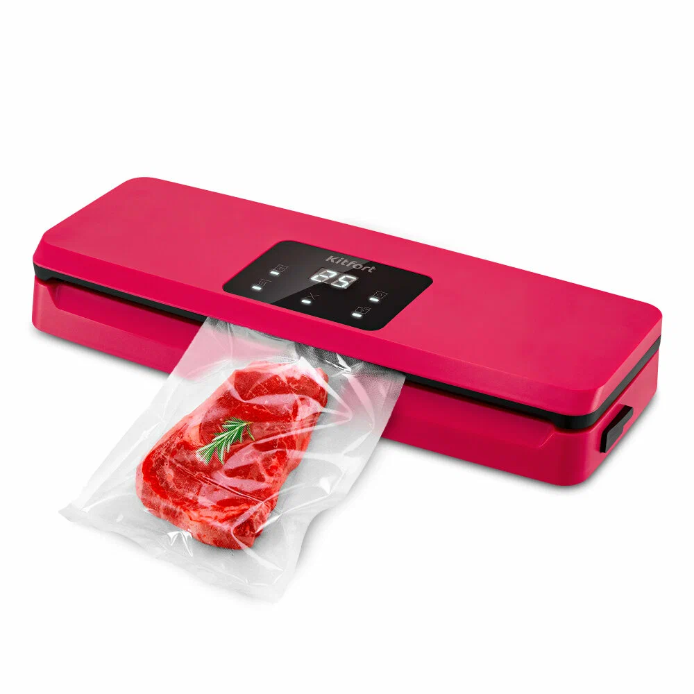 Вакууматор Kitfort КТ-1542 - современный прибор, призванный увеличить сроки хранения пищевых продуктов. Продукты, упакованные под вакуумом, сохраняют свежесть и не портятся существенно дольше по сравнению с обычными условиями хранения. У KT-1542 есть режимы для вакуумирования сухих и влажных продуктов, запечатывание пакетов без вакуумирования. Также предусмотрен отдельный режим для вакуумирования продуктов в специальных контейнерах (в комплект не входят). В KT-1542 есть возможность вакуумирования сухих и влажных продуктов. Влажные продукты могут намочить край пакета, поэтому время запечатывания необходимо увеличить. В данном режиме время запечатывания будет на 1–2 сек больше. Открытый край пакета укладывается под крышку прибора, после чего вакууматор начинает выкачивать из него воздух. Контейнер для жидкости можно легко снять и очистить. Прорезиненные ножки не дают скользить по столу во время работы. Вакуумирование ускоряет засолку, маринование и мочение. В вакууме процесс обработки продуктов такими способами значительно ускоряется. Кроме того вакуумная упаковка останавливает развитие микробов и сохраняет аппетитный внешний вид продукта. Для вакуумирования используют специальные пакеты или плёнку в рулонах. Их ширина не должна превышать длину запечатывающего элемента — 30 см. В комплектации с КТ-1542 идёт комплект пакетов для вакуумирования, размерами 15 х 20 см.