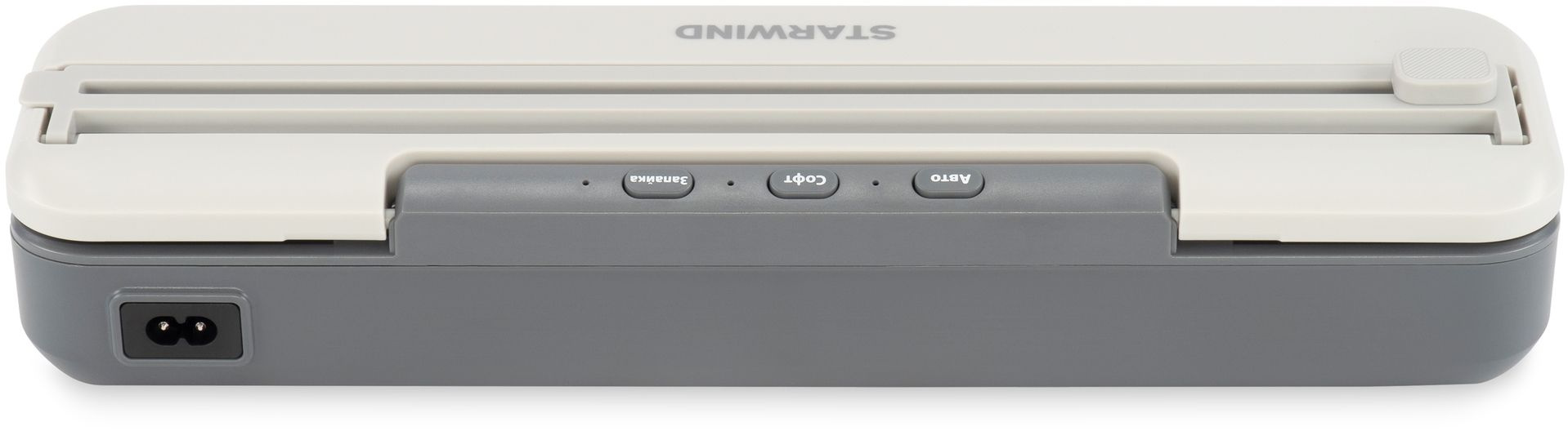4 программы, откачака 4,5л/минуту, макс. давление -65Kpa, шум 70dB, встроенный нож, насадка для вакуумации контейнеров, 10 пакетов 20*30см в комплекте.