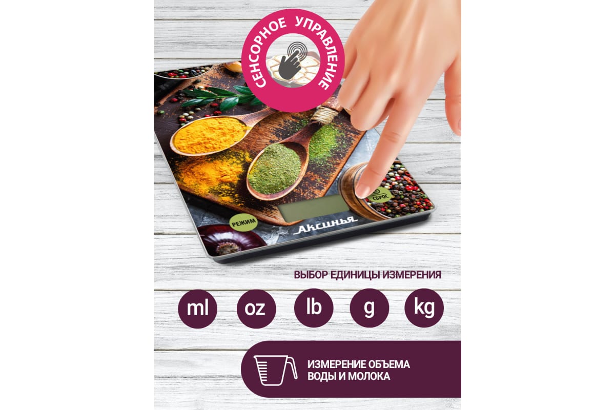 Весы настольные электронные Аксинья КС-6517 Специи 5 кг, стекло Р1-00009190 это современный прибор для взвешивания продуктов.