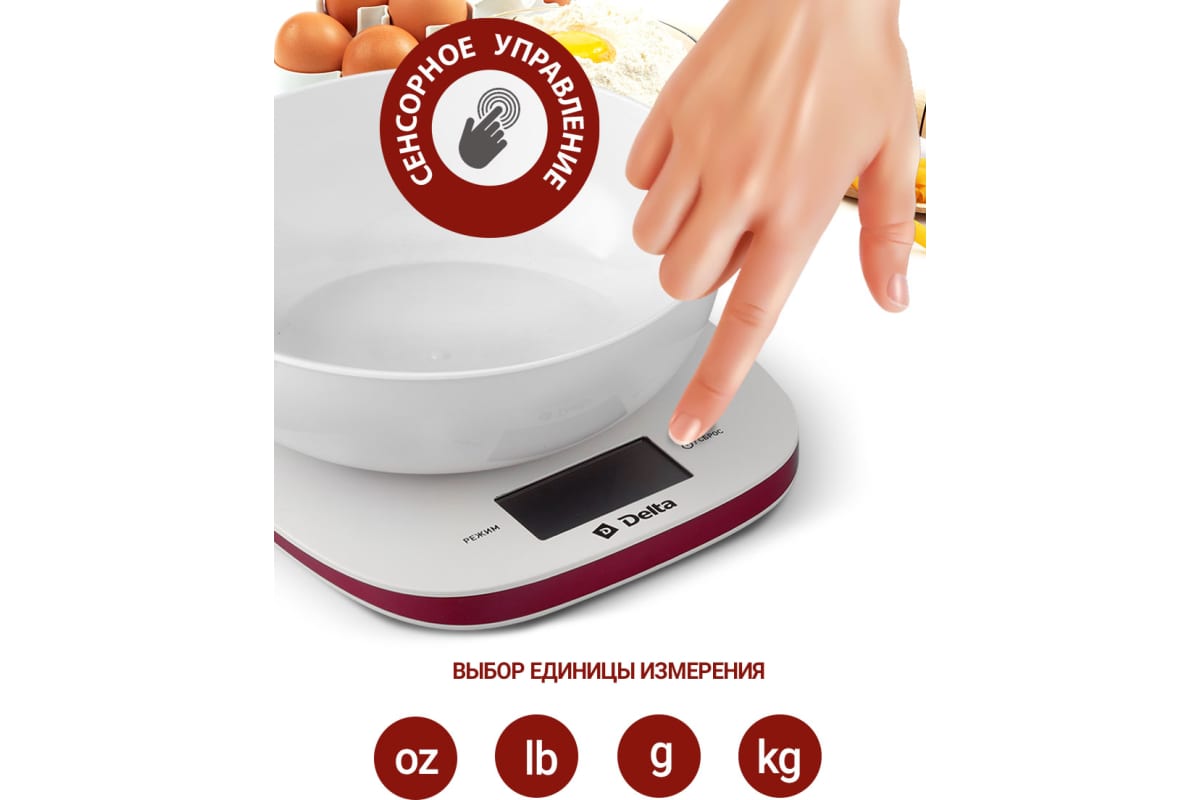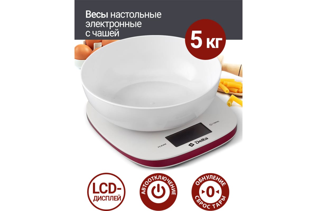 Весы настольные электронные DELTA KCE-72 белый с бордовым 5кг Р1-00010214 это надежное высокоточное многофункциональное устройство, которое позволяет определять вес предметов с наименьшей погрешностью в бытовых и аналогичных им условиях.