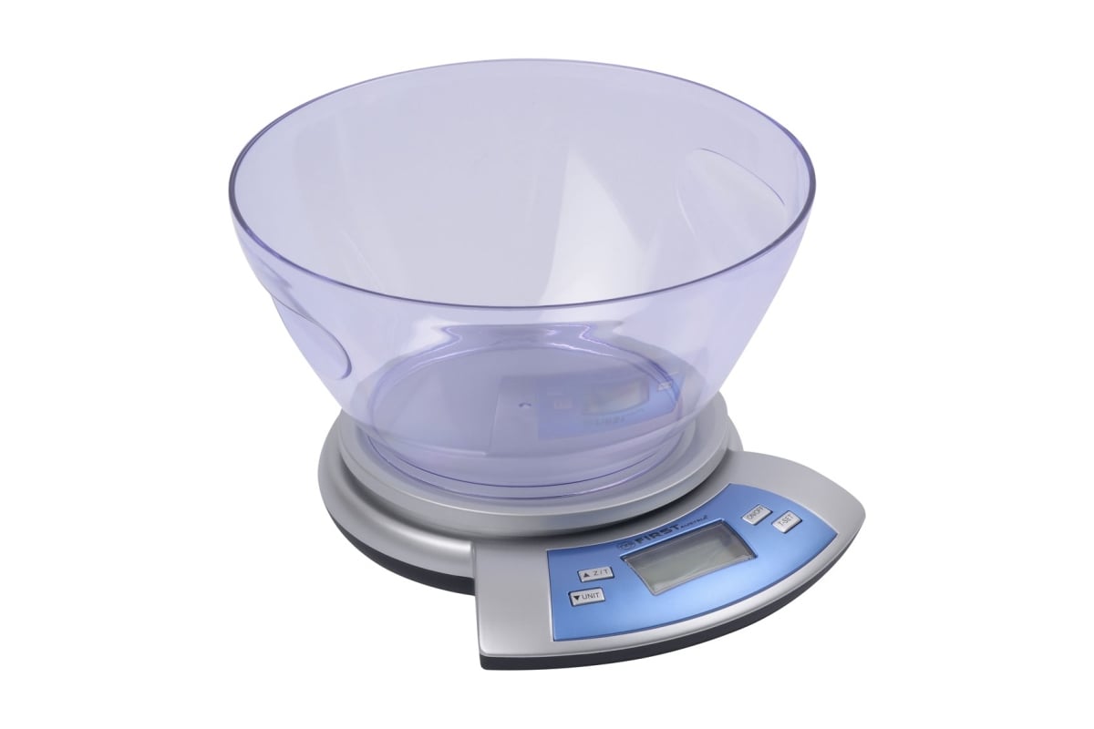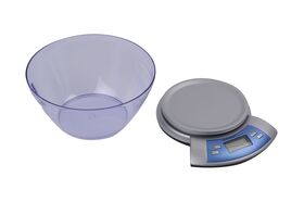 Электронные весы с удобной настольной конструкцией и чашей из пластика обладают максимальной нагрузкой до 5 кг. Дисплей LCD позволяет легко читать показания, а цена деления составляет всего 1 грамм.