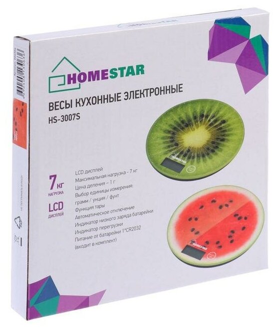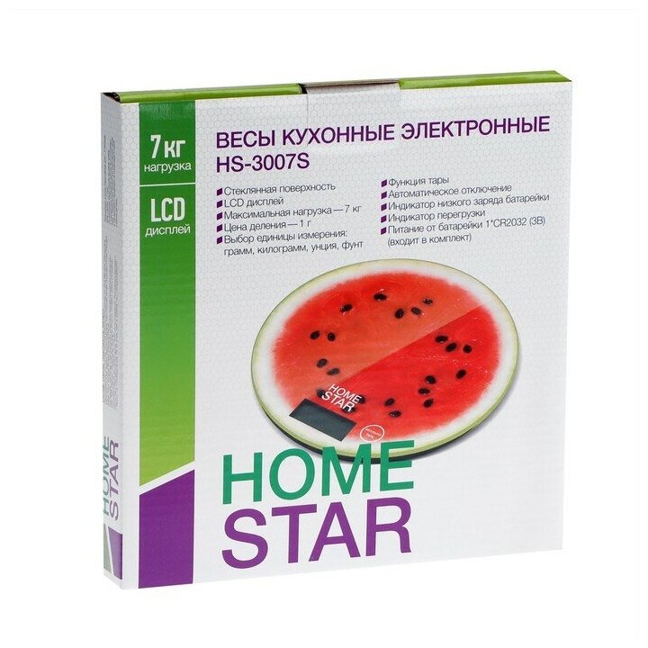 Кухонные электронные весы HomeStar HS-3007S, 7 кг, арбуз 004904 подходят для эксплуатации в домашних условиях.