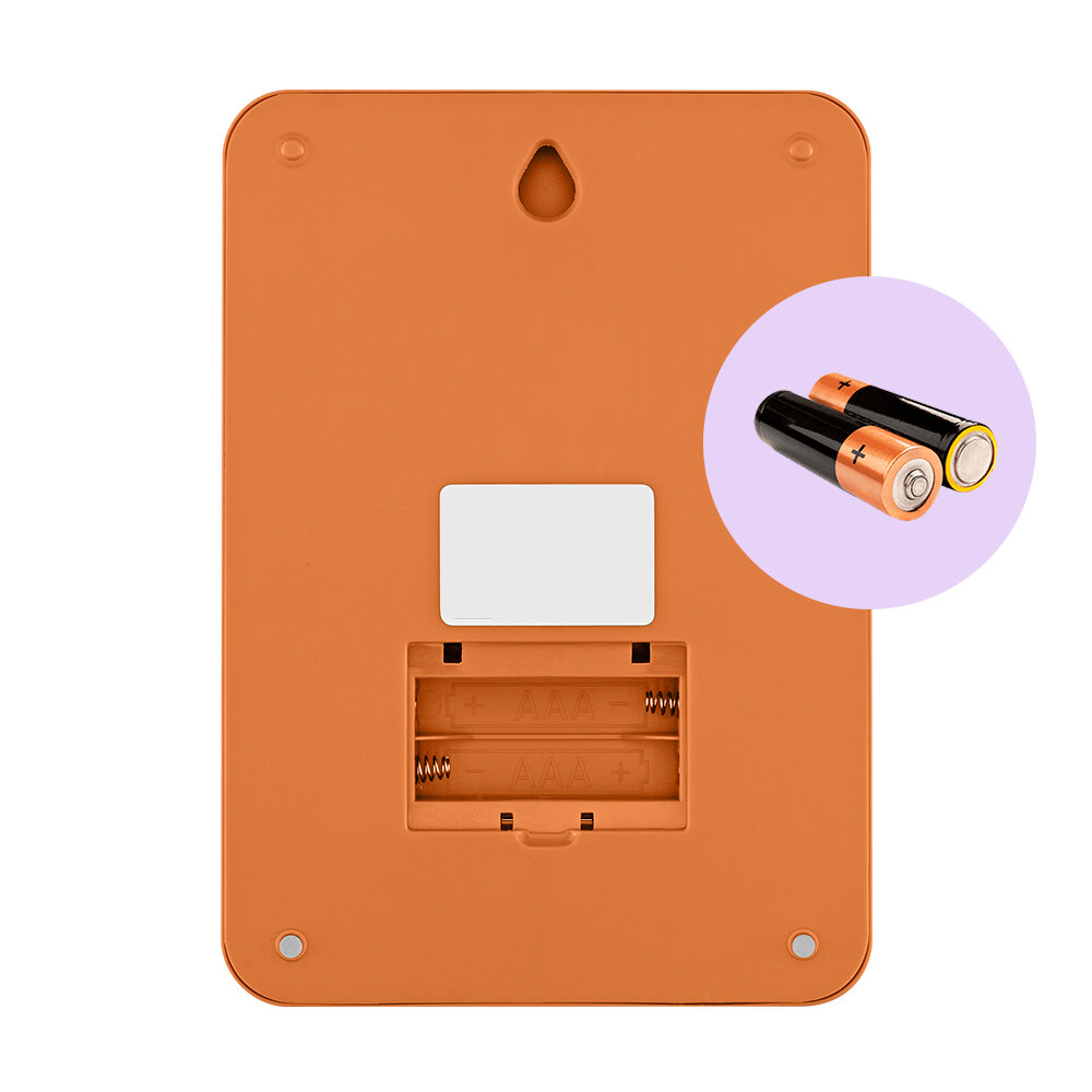 Весы оснащены жидкокристаллическим дисплеем с крупными цифрами, функциями тарирования и выбора единиц измерения. Весы работают от двух батареек типа ААА >< 1,5 В.