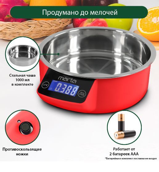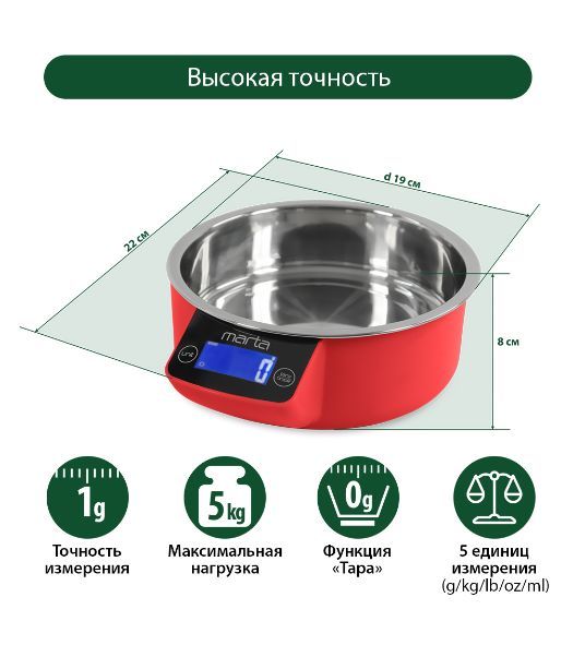 Весы кухонные MARTA MT-1647 красный рубин