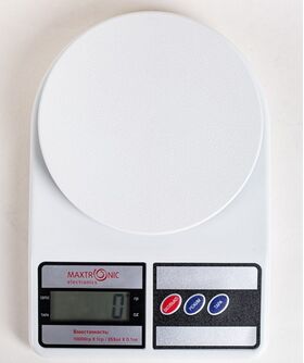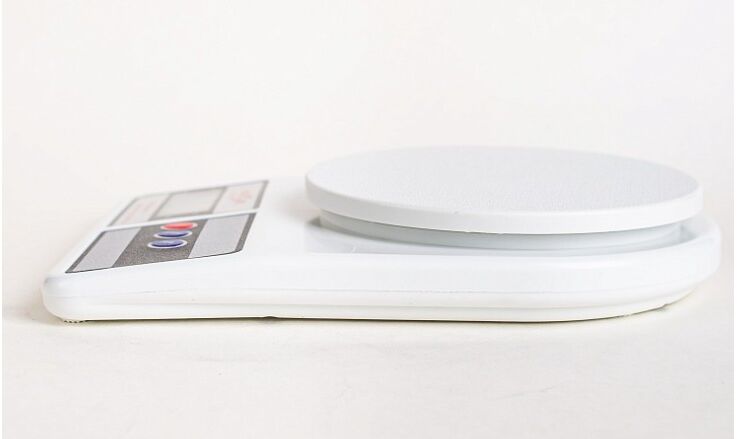 Современные электронные кухонные весы имеют элегантную платформу из пластика. Предел взвешивания 10 килограмм, шаг 1 грамм. Нейтральный дизайн в белом цвете прекрасно подойдет под любое оформление Вашей кухни. Весы работают от двух батарей типа ААА (не входят в комплект). Большой и яркий дисплей (50*19мм) отлично отображает крупные цифры. Есть возможность выбрать меру измерения - унции или граммы - с помощью кнопки "Mode". В качестве мерной чаши можно использовать абсолютно любую подходящую по размеру емкость в комбинации с режимом - "Tare"