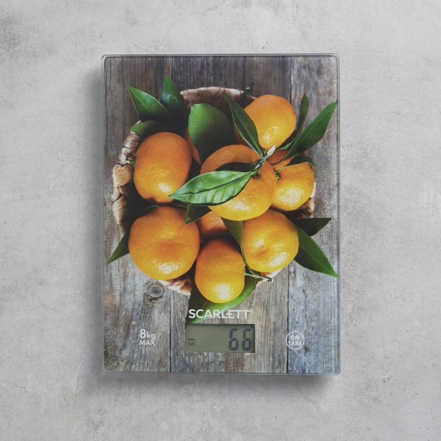 Электронные кухонные весы Scarlett привлекают внимание эффектным дизайном. Тонкая платформа, выполнена из ударопрочного закалённого стекла. Максимально допустимая нагрузка составляет 8 кг, о её превышении вас предупредит индикатор на дисплее.