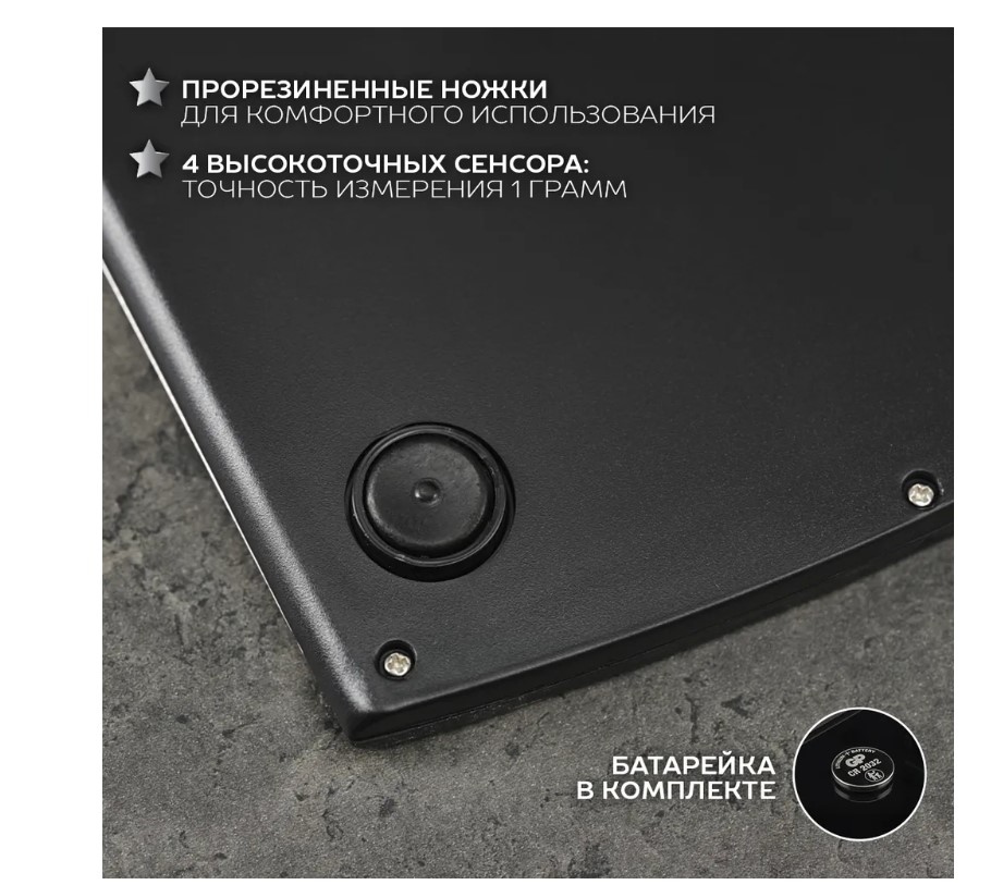 Кухонные весы Scarlett SC-KS57P72 измеряют вес с высокой точностью, благодаря 4-сенсорной технологии.
