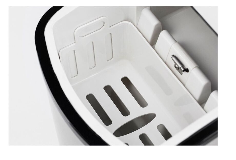 Наблюдать за приготовлением льда можно через специальное прозрачное окошко в крышке прибора. Данная модель производит лед в цилиндрической форме с углублением посередине, что позволяет ему максимально соприкасаться с жидкостью и быстро охлаждать ее. Помимо этого, в ходе приготовления коктейлей при помощи блендера или шейкера, тонкие стенки цилиндров с легкостью переламываются в ледяную крошку.