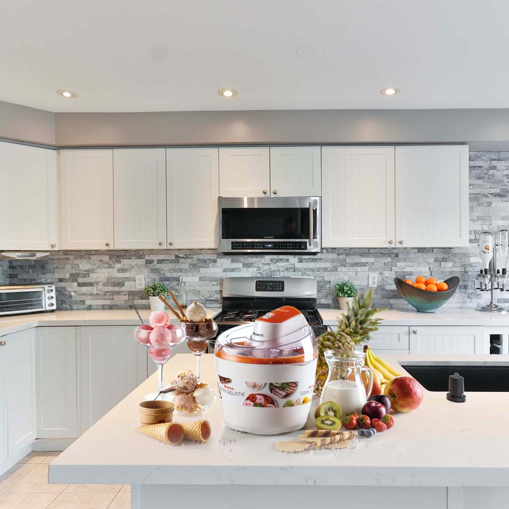 Благодаря холодильной корзине машины для мороженого с двойной изоляцией, мороженое готово всего за 30 минут: просто выберите ингредиенты, молоко, свежие фрукты, а также шоколад или сухофрукты, и создайте смесь, которую можно вылить непосредственно в машину для мороженого.
