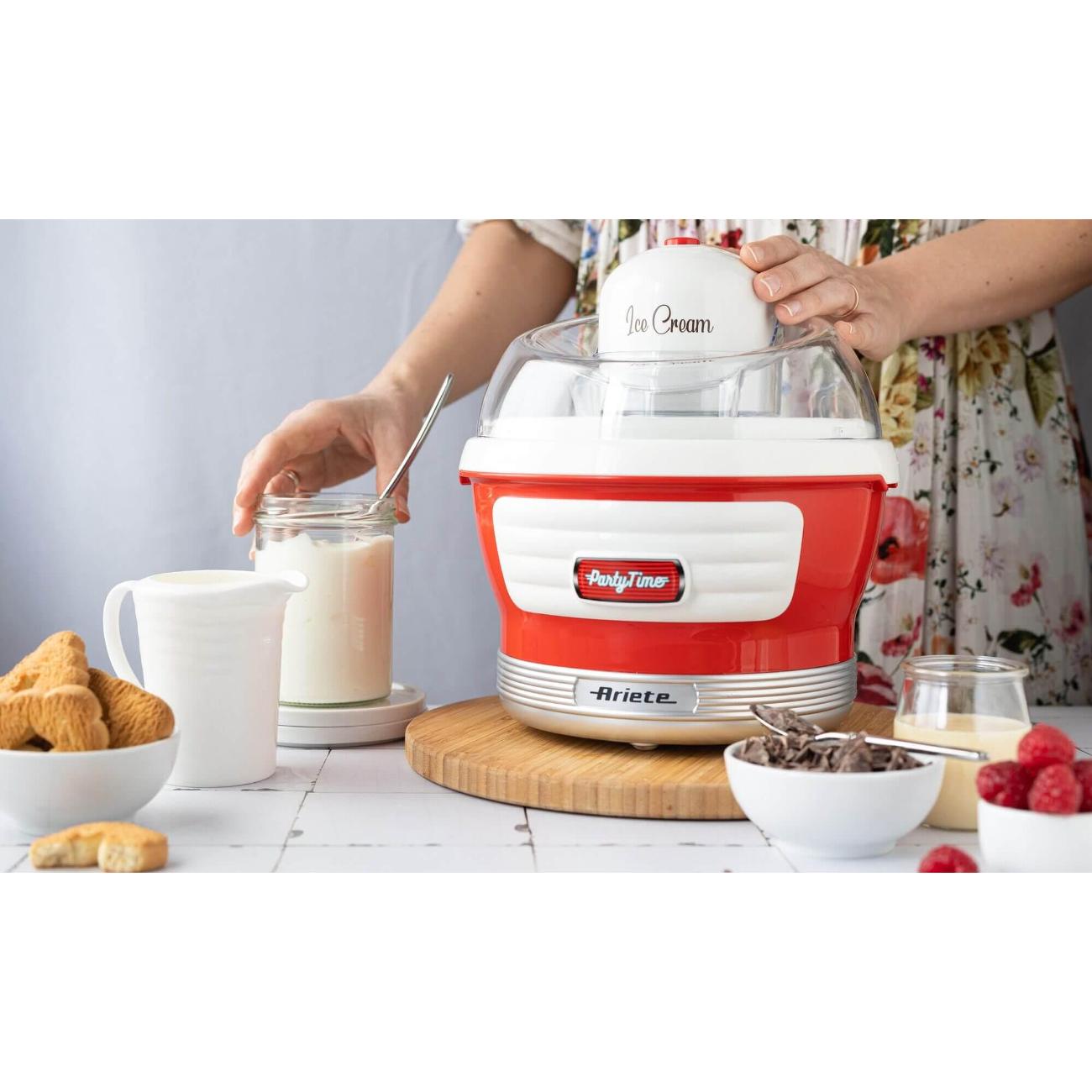 Организуйте потрясающую вечеринку с мороженицей ARIETE! Приготовьте свое любимое мороженое всего за 30 минут. Мороженица объемом 1,5 л поставляется со съемной чашей с охлаждающей жидкостью с двойной изоляцией и прозрачной верхней крышкой с отверстием для добавления ингредиентов: предварительно охладите чашу за 24 часа, поместите ее в машину и начните делать свой собственный лед. крем. Чего же ты ждешь? Начните организовывать свою вечеринку!