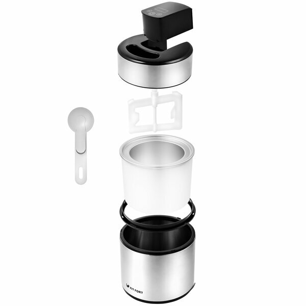 Мороженица имеет стильный металлический корпус, сенсорное управление, а также таймер. Устройство снабжено системой смешивания и имеет чашу заполненную хладагентом для охлаждения мороженого во время приготовления.