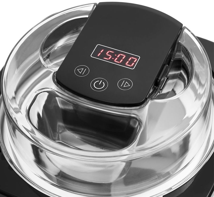 На панели управления вы можете выбрать время приготовления с помощью таймера на 45 минут. Конструкция мороженицы полностью разборная. Её легко мыть и собирать.