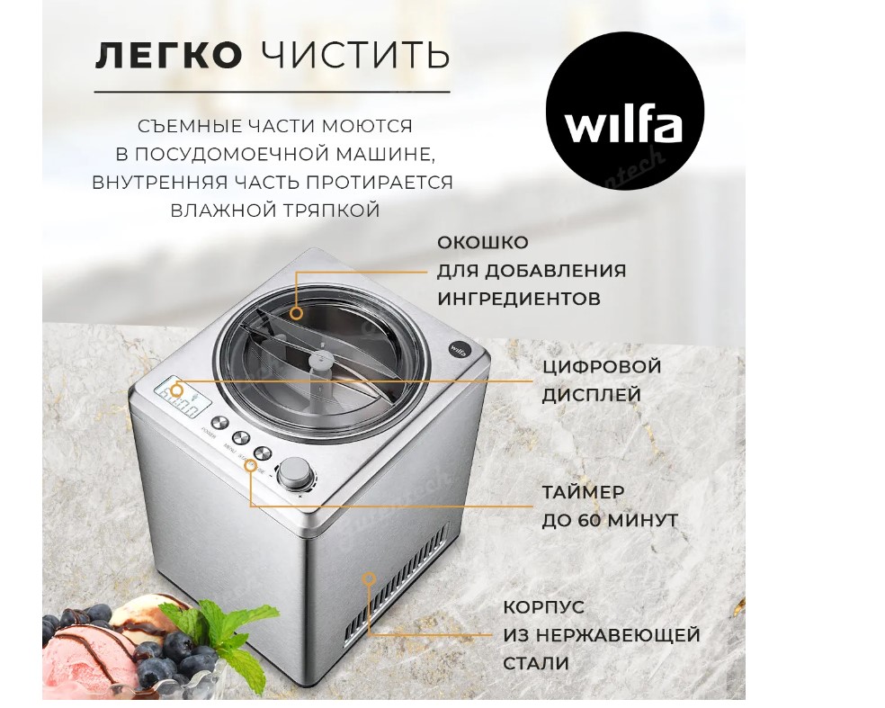 Компрессорная мороженица, которая одновременно смешивает и замораживает ингредиенты. Это похоже на сон: положите ингредиенты в чашу и нажмите кнопку. Через час у вас есть мороженое. Десерт, который нравится всем, и детям, и взрослым.Компрессор мощностью 250 Вт, замораживает ингредиенты до температуры от минус 18 до 35 градусов, а полностью автоматический миксер обеспечивает нежную консистенцию.