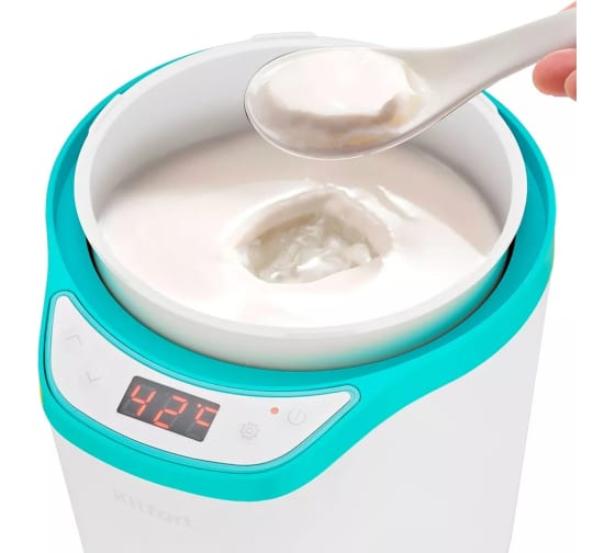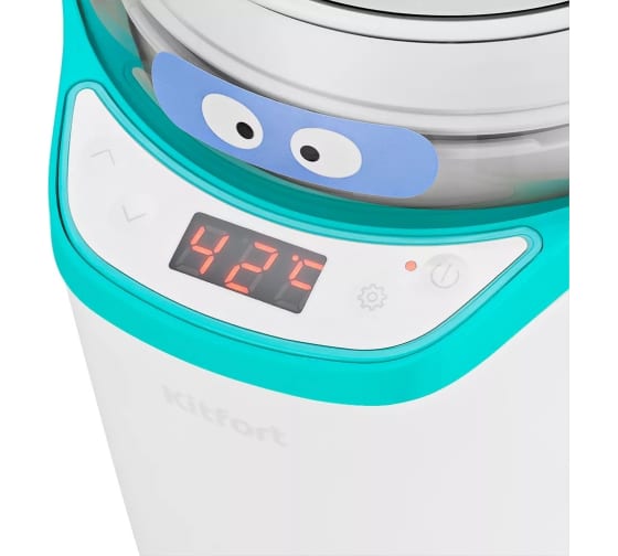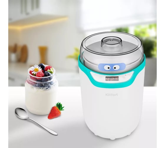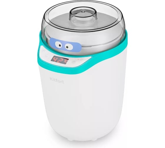 Йогуртница KITFORT бело-бирюзовый КТ-2077-3 предназначена для приготовления вкусного и полезного домашнего йогурта. Смешайте молоко и закваску в контейнере, установите контейнер в йогуртницу, выберете подходящую программу или выставьте время и t, затем нажмите кнопку включения. Йогуртница равномерно нагревает контейнер с ингредиентами, поддерживая заданную температуру, и автоматически отключает нагрев по истечении заданного времени.
