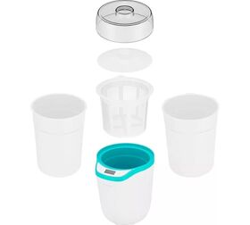Прибор укомплектован 2 контейнерами на 1,8 ли 1,6 л с крышкой, в которых йогурт можно хранить в холодильнике. В комплекте также есть сито для приготовления греческого йогурта, творога или сыра. Все части легко разбираются, моются и компактно хранятся.