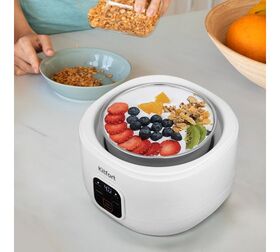 Йогуртница предназначена для приготовления вкусного и полезного домашнего йогурта. Прибор укомплектован чашей из нержавеющей стали емкостью 1 литр с пластиковой крышкой. Готовый йогурт можно хранить в холодильнике прямо в чаше. Йогуртница равномерно нагревает чашу с ингредиентами, поддерживая необходимую температуру.
