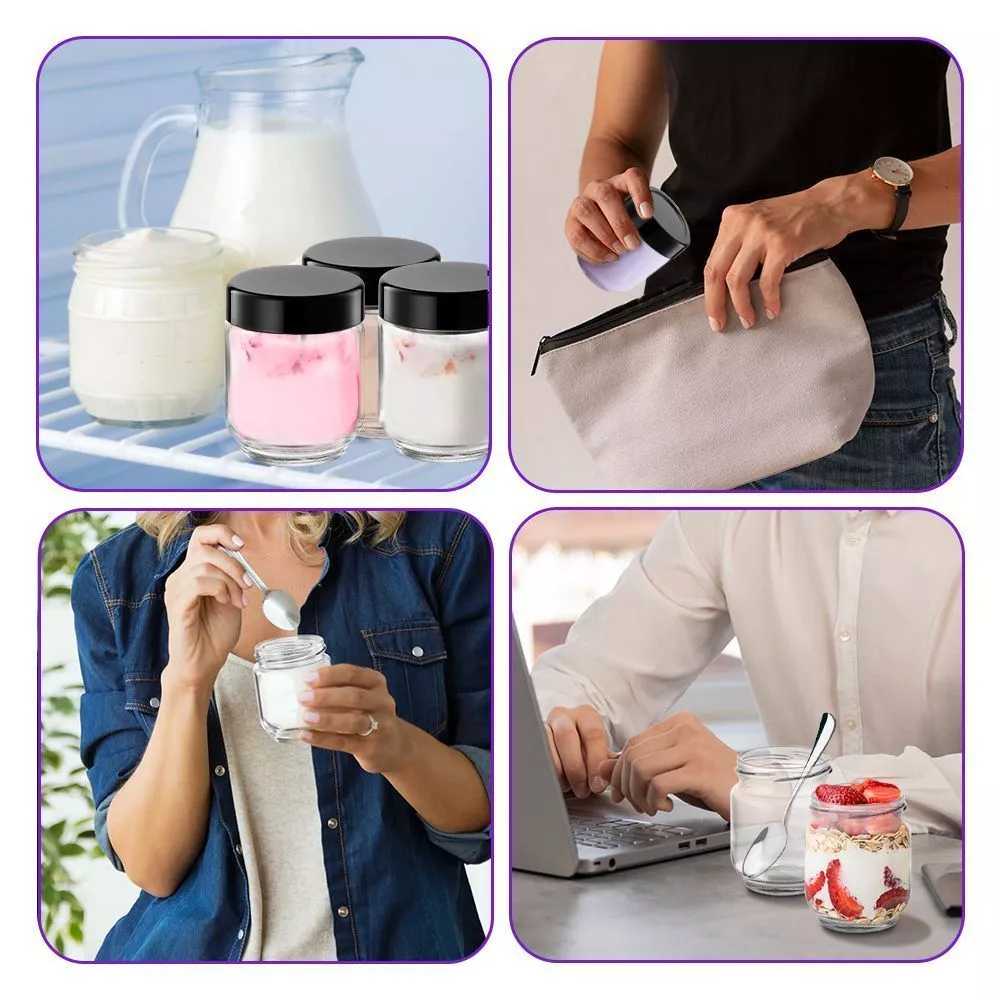 В комплекте с йогуртницей идут 7 стеклянных баночек, каждая объёмом 200 мл, с удобными пластиковыми откручивающимися крышками. Стекло помогает сохранить все полезные свойства домашнего йогурта и является экологически безопасным материалом.