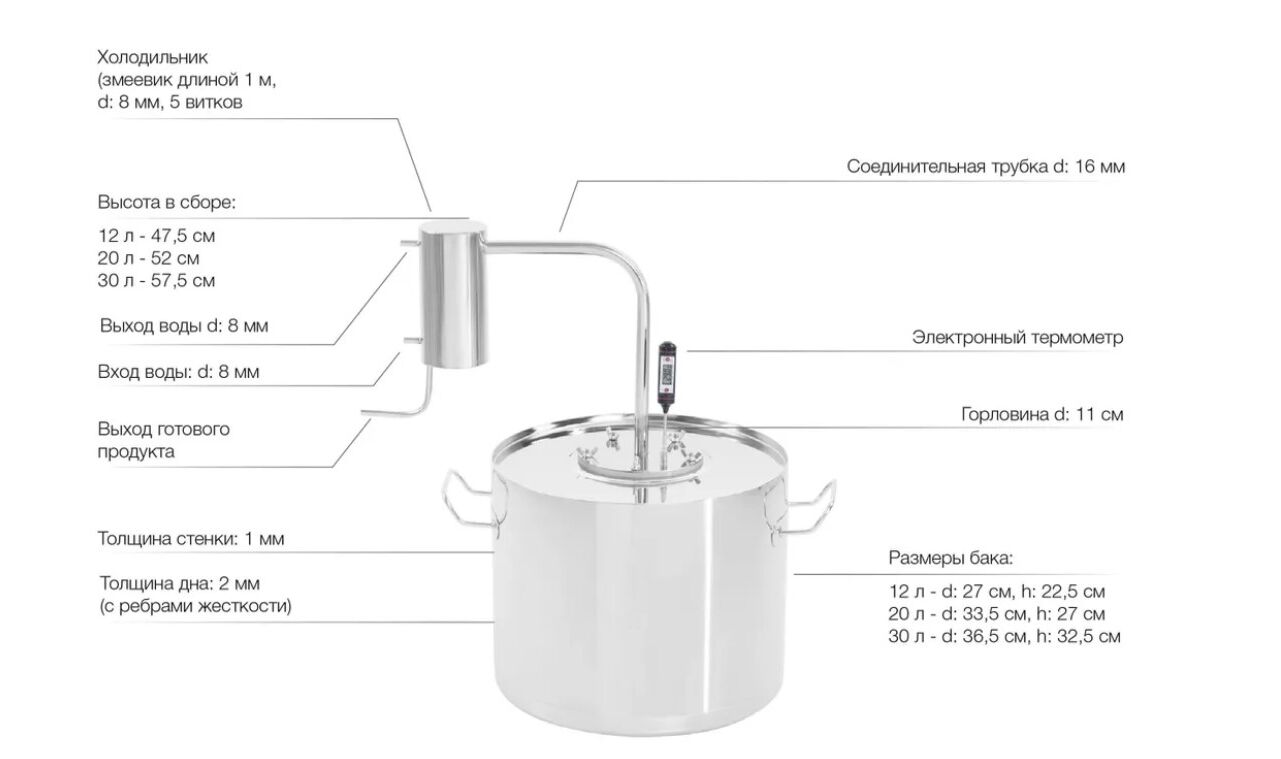 «Кубань» - классический простейший бюджетный дистиллятор самогонный аппарат без сухопарника. Оптимальная базовая модель: