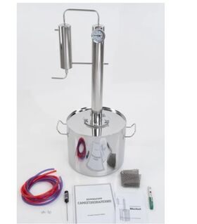Термометр электронный 2 шт Инструкция 1 шт Прокладка силиконовая 1 шт Дистиллятор «Меркель» 1 шт Перегонный куб 1 шт Шланг (8 мм) 4 м РПН 1 рулон Гарантийный талон 1 шт Барашки для крепления 5 шт