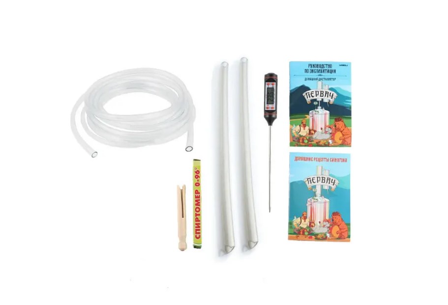 - В комплекте с данной моделью идут проточный охладитель, сухопарник с выходом для слива «сивушных» масел, силиконовые шланги, спиртомер, термометр, надстройка "Аромат" для получения более насыщенного вкуса и аромата напитка. Особенность – съемная крышка и кламповое крепление.