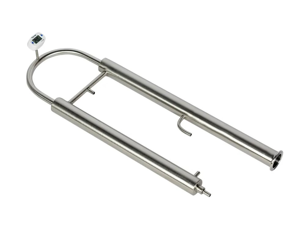 Единственный аппарат на рынке с трехтрубчатым дефлегматором! Пары в нём соприкасаются с холодными трубками на большей площади, за счет этого повышается эффект от охлаждения и возвращения. Такой дефлегматор позволяет улучшить процесс разделения фракций, а значит делает дистиллят чище, а крепость больше. При этом он особенно эффективен на системах автономного охлаждения из-за низких требований к давлению воды.