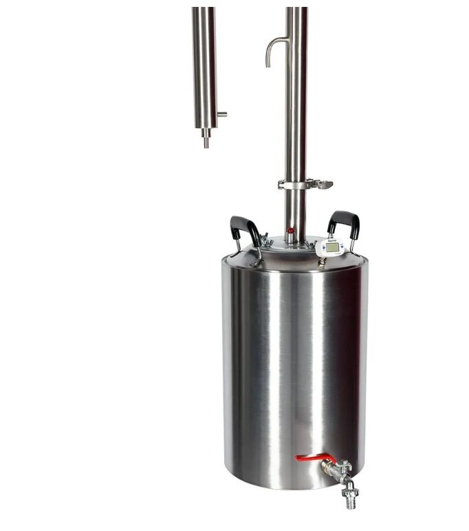 Необходимо учитывать важность измерения температуры при перегонке. Чем точнее температура и меньше перепадов при изготовлении напитка, тем он вкуснее. Поэтому конструкция аппарата предусматривает два электронных термометра – для контроля температуры в баке и паров в верхней части аппарата. Они позволят контролировать температуру до десятых градуса, и значит вы всегда сможете получить высокоградусный продукт. С Сельмаш Pro вы сможете создать ваш лучший напиток.