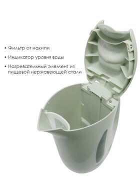 особенности: индикатор уровня воды, фильтр, отсек для хранения шнура