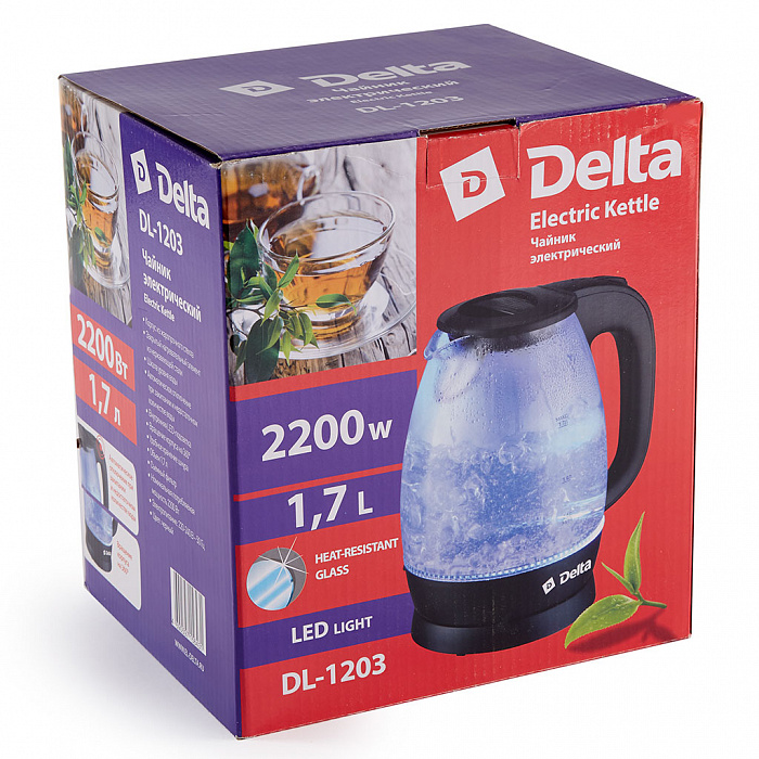 Чайник DELTA DL-1203 стекло черный