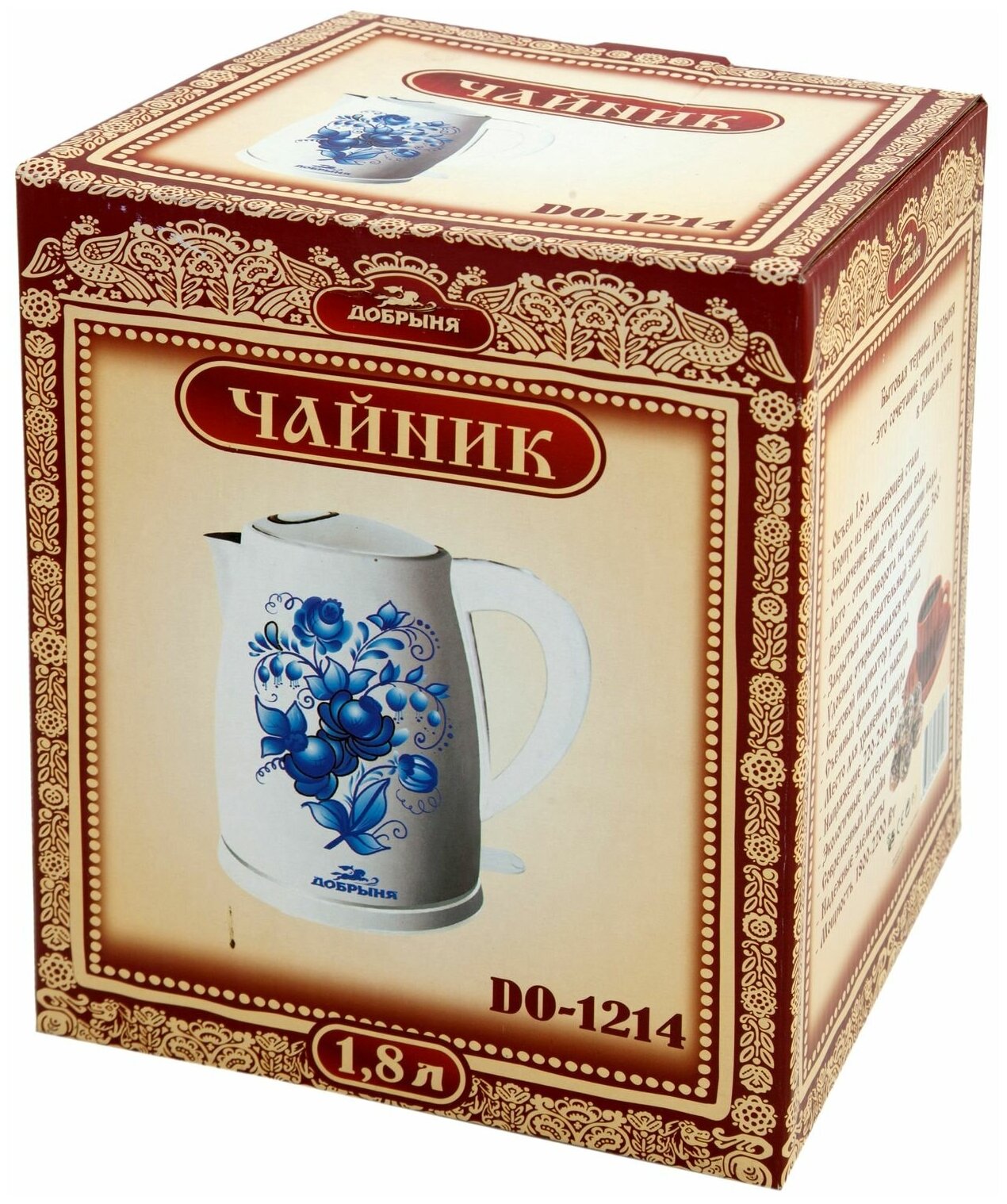 Электрочайник «Добрыня» выполнен из высококачественной стали. Прозрачный индикатор позволит контролировать уровень воды. Благодаря мощности в 2 200 Вт чайник вскипит за считаные минуты, а большой объём (2 л) позволит приготовить напиток для нескольких человек.