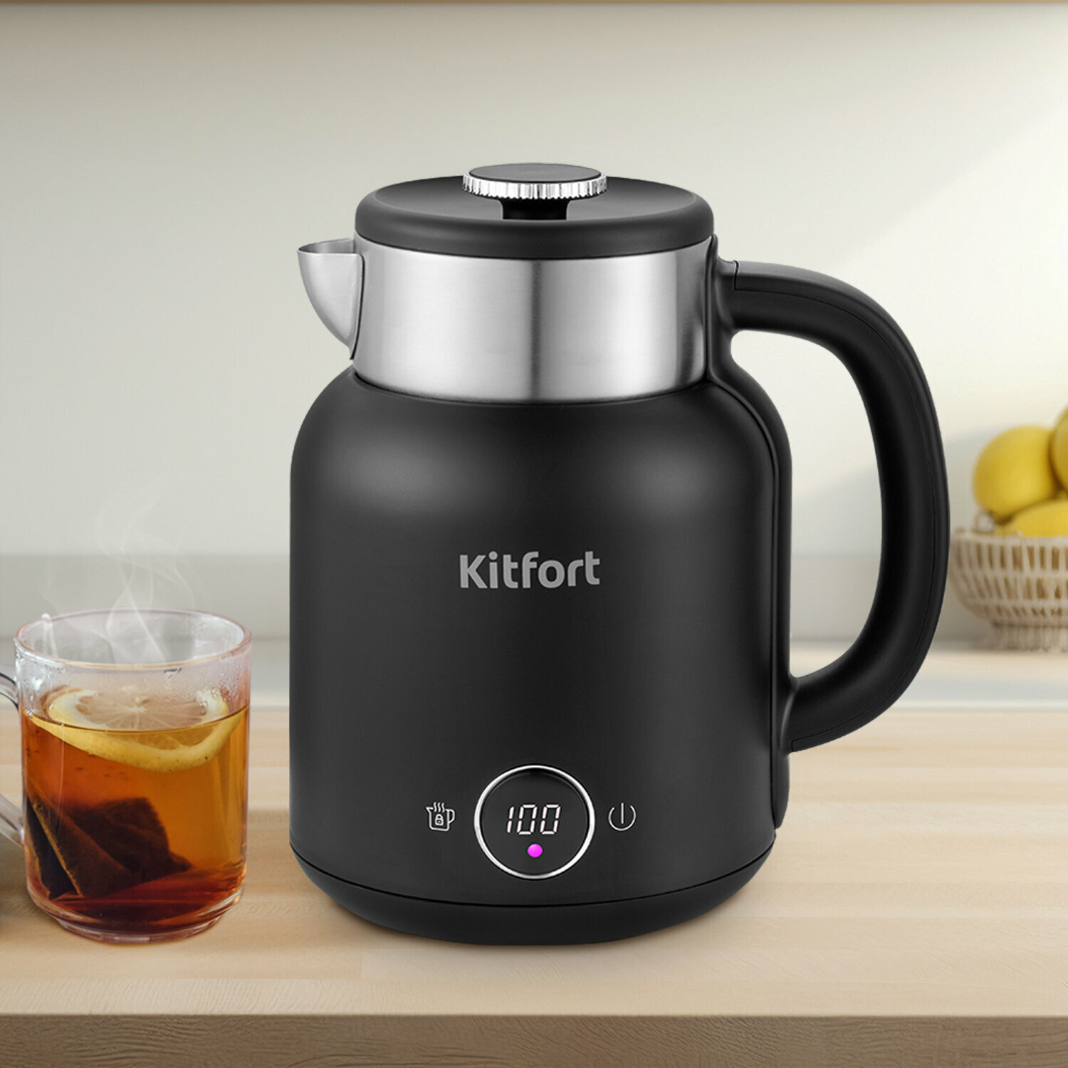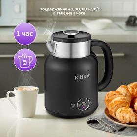 Электрический чайник с электронным терморегулятором KT-6196 может не только вскипятить воду, но и нагревать её до температур 40,70, 80 и 90?, что очень удобно при заваривании различных сортов чая.