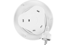 Подставка с центральным контактом дает возможность располагать на ней чайник в любом положении, обеспечивая вращение на 360°. Снизу имеется отсек для хранения шнура, в который можно смотать излишки шнура электропитания, чтобы он не мешал на столе.