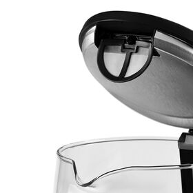 Термостойкое стекло не поглощает запахи и не выделяет вредных веществ. Функция автоматического подогрева поддерживает заранее заданную температуру воды.