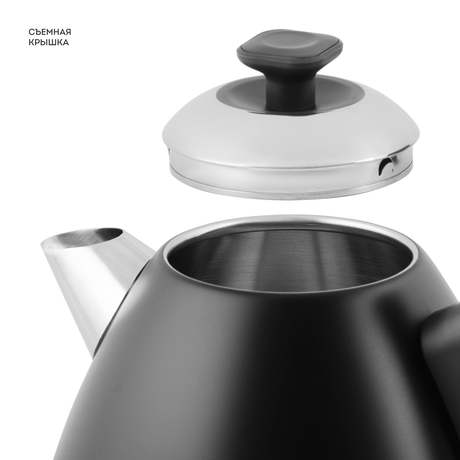 Съемная крышка облегчает наполнение чайника водой и очистку.