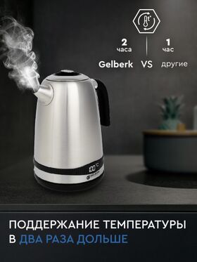 Умный чайник GL-405 от Gelberk идеально подойдет для семьи из 3-4 человек. Электрический чайник выполнен из нержавеющей стали 304SUS, хорошо завальцованы верхние кромки корпуса, предохраняющие от порезов.