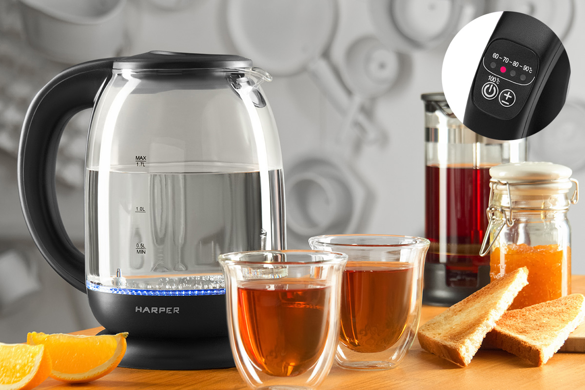 Электрический чайник Harper HWK-GD04 – это простой, функциональный и по-настоящему безопасный кухонный прибор. Имеет вместительную стеклянную колбу на 1,7 литра и закрытый ТЭН. Поэтому легко обслуживается и моется. При наливании кипяток фильтруется от механических примесей с помощью встроенного нейлонового фильтра. В чайнике предусмотрено сразу 3 уровня защиты: автоотключение при закипании, прекращение подачи питания при снятии с подставки, обнаружение недостаточного уровня воды. Есть режим поддержания нужной температуры.