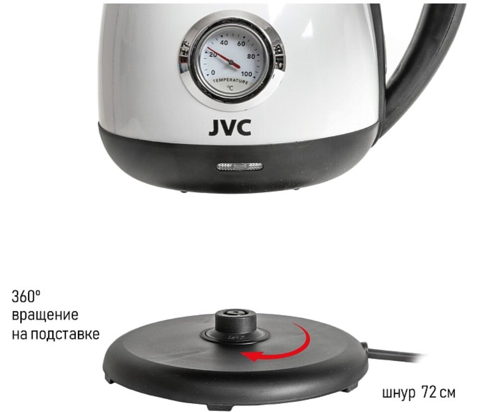 СИСТЕМЫ ЗАЩИТЫ: защита от включения без воды; автоматическое отключение. Качественный современный чайник JVC станет полезным приобретением для дома или дачи.