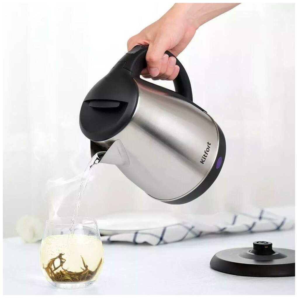 Электрический чайник Kitfort КТ-6161 предназначен для кипячения воды дома, в офисе, на даче. Корпус чайника выполнен из нержавеющей стали. Чайник автоматически отключается при закипании, имеет защиту от перегрева и от включения без воды. Ёмкость 1,8 л.