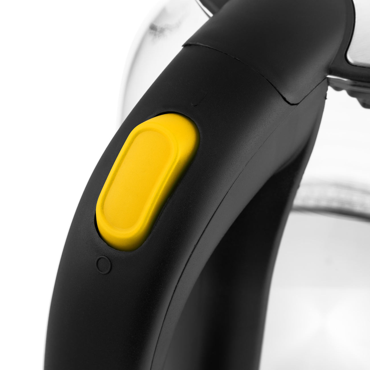 Объём прибора – 1,7 литра, этого хватит, чтобы приготовить напитки и домочадцам, и друзьям, пришедшим в гости. Благодаря встроенному в носик съёмному нейлоновому фильтру хлопья накипи не попадут в ваши чашки. Резервуар для воды выполнен из прочного закалённого стекла, нагревательный элемент скрыт. Такое исполнение существенно упрощает уход за устройством: гладкие стенки легко вымыть, известковые отложения легче «отойдут» от плоского диска, чем от спирали.
