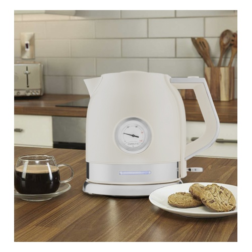 На корпусе чайника расположен термометр, который показывает температуру воды. Это удобно, если вы готовите напитки, для которых требуются определенная температура воды, например, зеленый чай, чёрный чай, кофе и т. д.