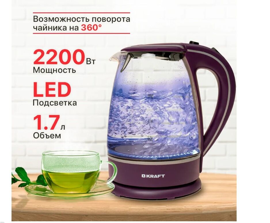 Электрический чайник KRAFT KF-1702VI отличается надежностью, привлекательным дизайном и удобством в эксплуатации.