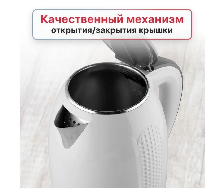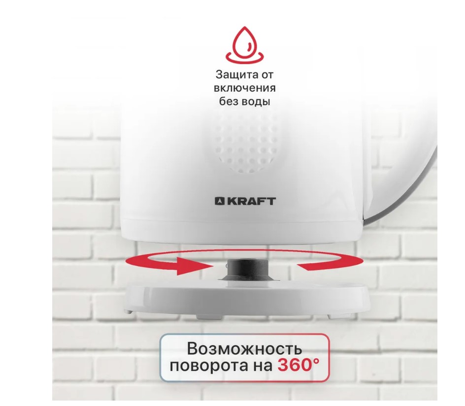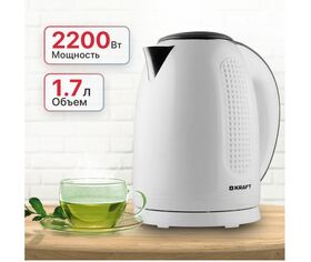 Электрический чайник KRAFT KF-KPS1769W, объёмом 1.7 л. отличается надежностью, привлекательным дизайном и удобством в эксплуатации.