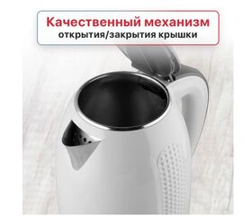 Откидная крышка с кнопкой для удобного наполнения и очистки чайника исключает контакт с паром.