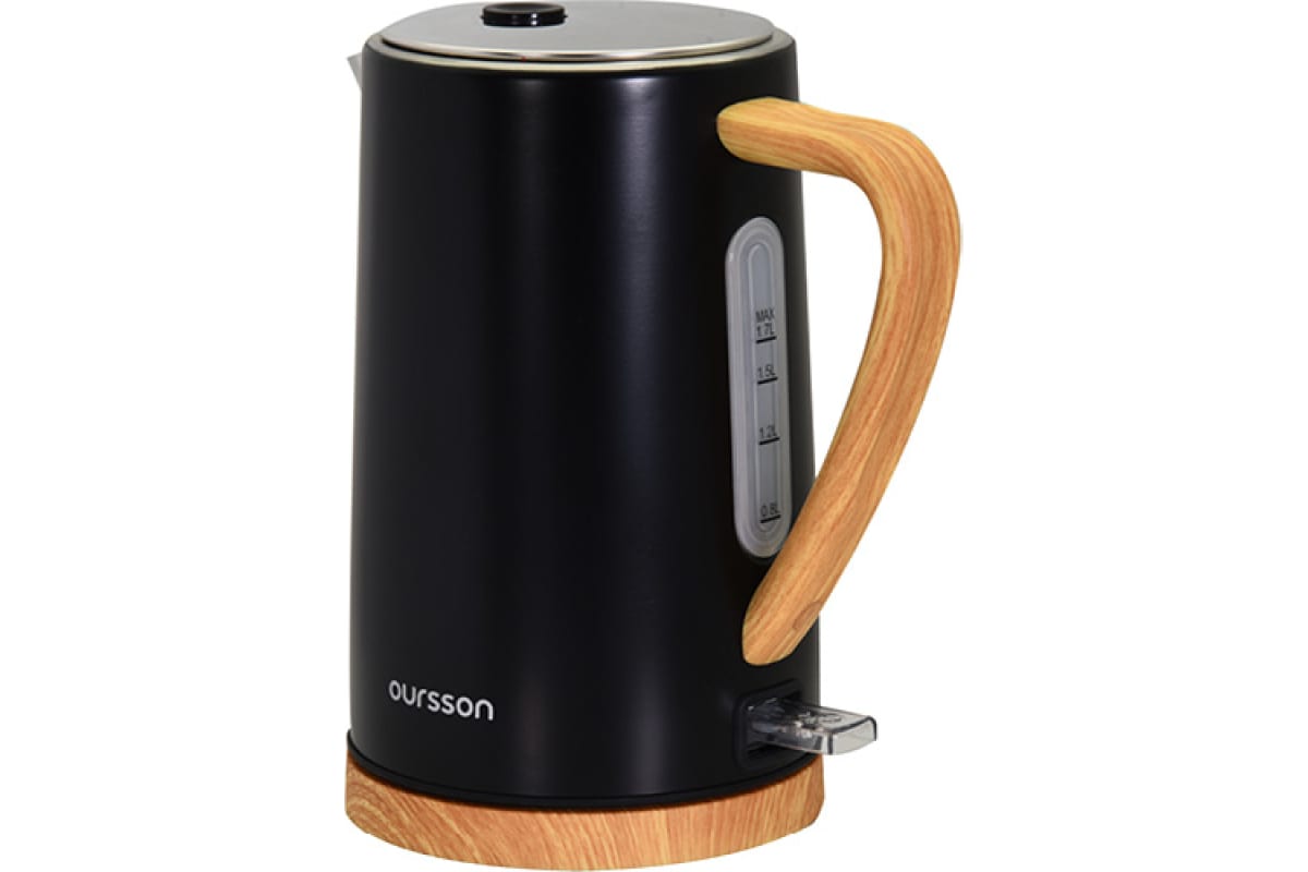 Электрический чайник KE1754MD Oursson выполнен из высококачественной нержавеющей стали с декоративным элементом под дерево, объем составляет 1,7 литра, мощность 2200 Вт. Контроллер английской фирмы Strix обеспечивает безопасное и долговременное использование чайника. Модель оснащена специальным съемным фильтром, который не позволит накипи попасть в чашку. Корпус чайника свободно вращается на 360 градусов, что гарантирует удобство в эксплуатации.