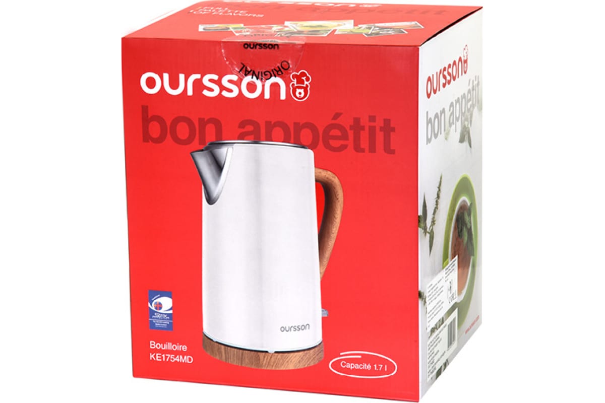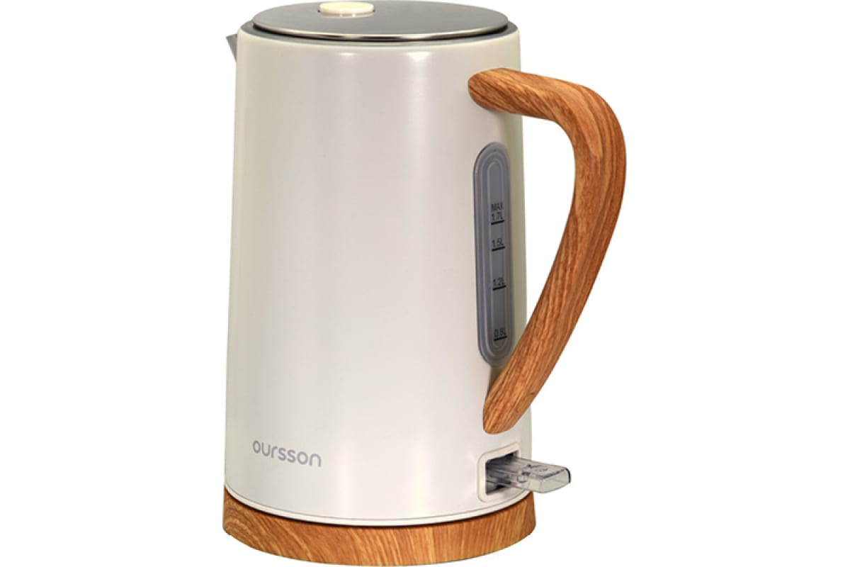 Электрический чайник KE1754MD Oursson выполнен из высококачественной нержавеющей стали с декоративным элементом под дерево, объем составляет 1,7 литра, мощность 2200 Вт. Контроллер английской фирмы Strix обеспечивает безопасное и долговременное использование чайника. Модель оснащена специальным съемным фильтром, который не позволит накипи попасть в чашку. Корпус чайника свободно вращается на 360 градусов, что гарантирует удобство в эксплуатации.