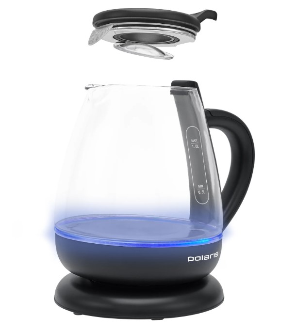 Обладая мощностью 1950 Вт, электрический стеклянный чайник способен за считанные минуты довести воду до состояния кипения. Колба для воды изготовлена из термостойкого стекла и подсвечивается голубым, когда прибор включен. Ручка, крышка и основание устройства выполнены из прочного пластика. Особенность стеклянного чайника - в особой конструкции крышки с отверстием, которая обеспечивает легкость залива воды без необходимости открытия крышки. Чайник электрический Polaris PWK 1077CGL предусматривает скрытый элемент нагрева, а дно чайника изготовлено из стали нового поколения “Promedic”, которая устойчива к термодеформации, легка в очистке. Внутри электрочайника установлен контроллер* Strix английского производства, который рассчитан на 15000 циклов кипячения. Фильтр, используемый в носике, изготовлен из нержавеющей стали. Он не позволяет частицам накипи попадать в чашку. Фильтр можно снять для очистки, чтобы он продолжал выполнять свою функцию и не менял вкус и запах напитка.*Контактная группа, или контроллер, расположена в месте соединения чайника с подставкой. Самыми надежными считаются контроллеры британских производителей, как, например, STRIX. Эта деталь отвечает за отключение чайника при закипании, а также за отключение чайника, если его случайно включили без воды.