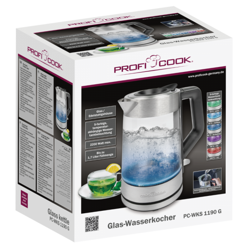 Чайник Profi Cook PC-WKS 1190G оснащен терморегулятором, что позволяет нагревать жидкость до заданной температуры, после чего прибор автоматически отключается. Благодаря скрытому ТЭНу пользователь может нагреть воду даже для одной чашки кофе или чая. При этом сам нагреватель выполнен из нержавеющей стали, поэтому не подвержен окислению и способен проработать без поломок долгие годы.