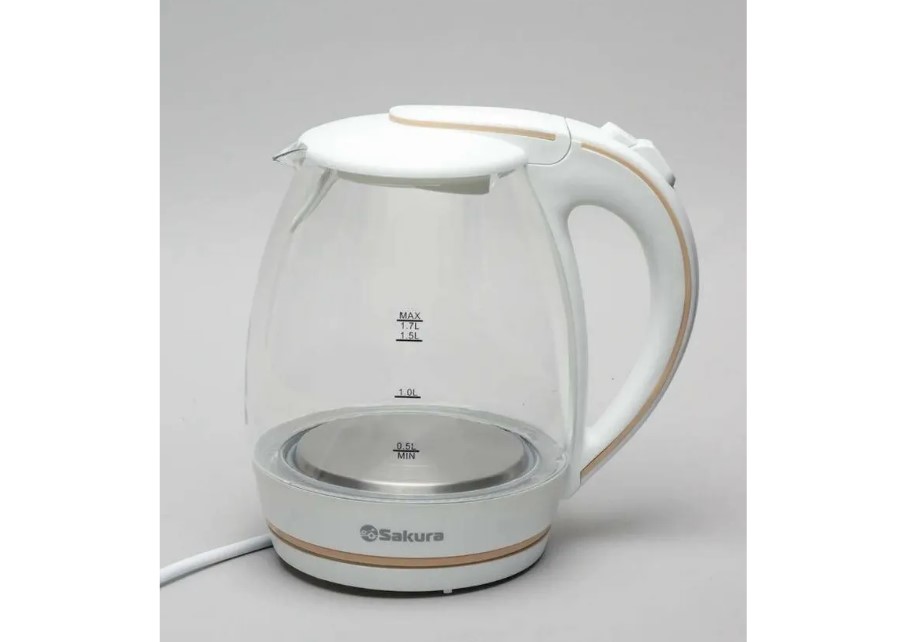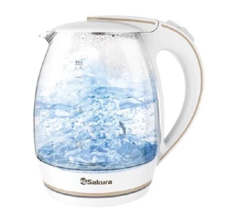 Объем 1,7 л, 1850-2200 Вт, стеклянный корпус, диск, LED подсветка при включении, автоматическое отключение при закипании.