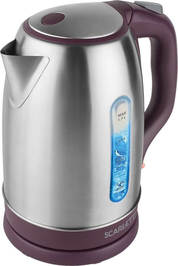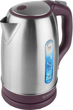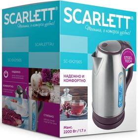 Мощный электрический чайник Scarlett SC-EK21S65 оснащён оптимальным объемом: 1,7 л. Возможность вращения на 360°, автоматическое открывание крышки, окно со шкалой на корпусе для контроля уровня воды и блокировка включения без воды делают эксплуатацию прибора практичнее и проще.