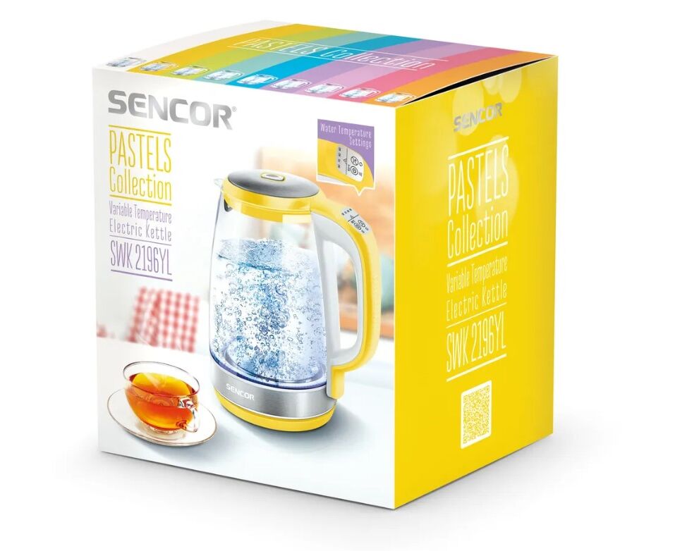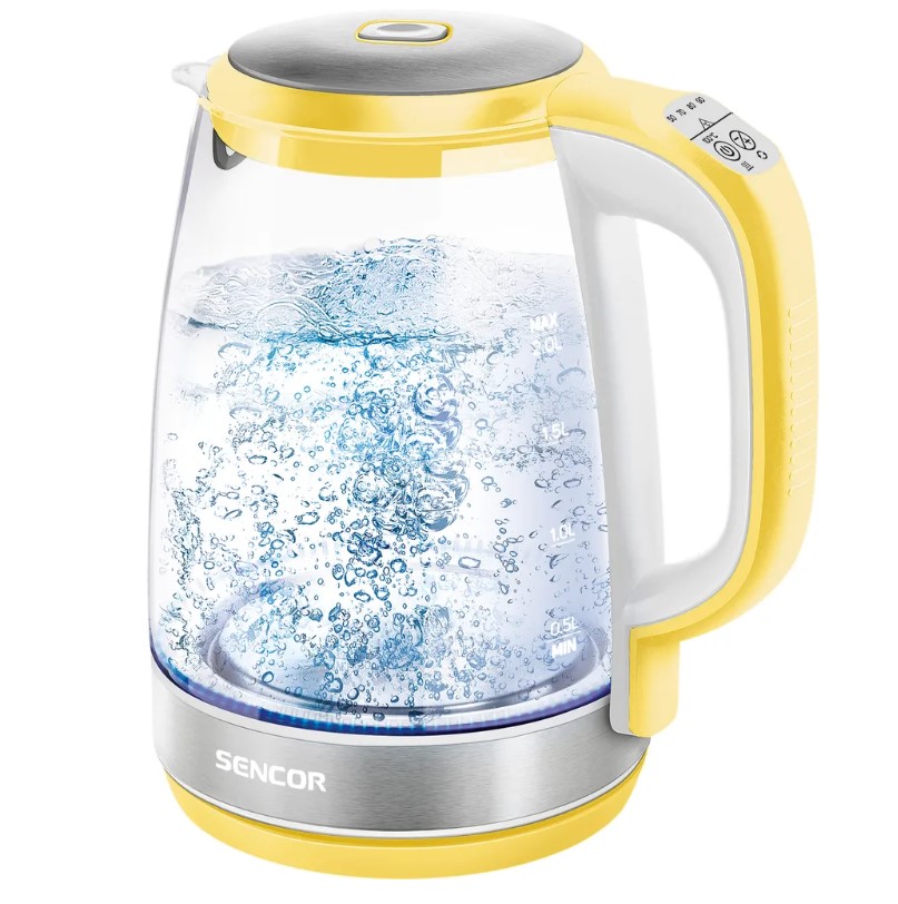 ✅Электрический чайник Sencor SWK 2196 YL изготовлен из высококачественного боросиликатного термостойкого стекла.